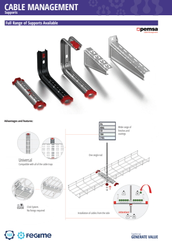 160CABLE MANAGEMENTTogether we GENERATE VALUESupportsFull Range of Supports AvailableClick System.No fi xings requiredAdvantages and features:Wide range of fi nishes and coatingsPGHDGC8304316LUniversalCompatible with all of the cable traysOne single rodInstallation of cables from the side