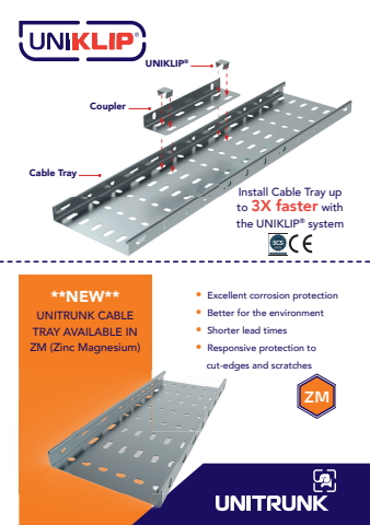 unitrunk, uni-trunk, uni trunkuniklip, uni-klip, uni klip%u2022 Excellent corrosion protection%u2022 Better for the environment%u2022 Shorter lead times%u2022 Responsive protection to cut-edges and scratchesuniklip, uni-klip, uni klipUNIKLIP%u00aeCouplerCable TrayInstall Cable Tray upto 3X faster with the UNIKLIP%u00ae system cut-edges and scratchesPP ZF ZMQQ**NEW**UNITRUNK CABLETRAY AVAILABLE IN ZM (Zinc Magnesium)