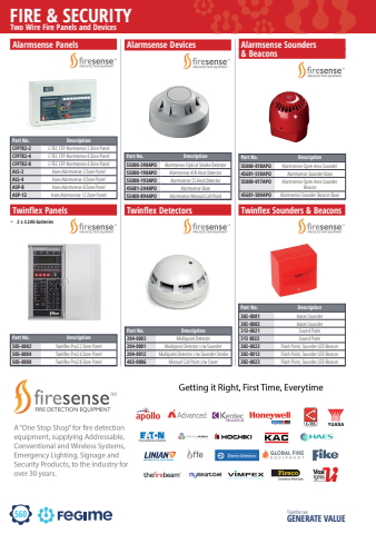 560FIRE & SECURITYTogether we GENERATE VALUETwo Wire Fire Panels and DevicesAlarmsense Panels Alarmsense Sounders & BeaconsPart No. DescriptionCFP702-2 C-TEC CFP Alarmsense 2 Zone PanelCFP702-4 C-TEC CFP Alarmsense 4 Zone PanelCFP702-8 C-TEC CFP Alarmsense 4 Zone PanelALS-2 Haes Alarmsense 2 Zone PanelALS-4 Haes Alarmsense 4 Zone PanelASP-8 Haes Alarmsense 8 Zone PanelASP-12 Haes Alarmsense 12 Zone PanelPart No. Description55000-018APO Alarmsense Open Area Sounder45681-510APO Alarmsense Sounder Base55000-017APO Alarmsense Open Area Sounder Beacon45681-509APO Alarmsense Sounder Beacon BaseTwinflex DetectorsPart No. Description204-0003 Multipoint Detector204-0001 Multipoint Detector c/w Sounder204-0012 Multipoint Detector c/w Sounder Strobe402-0006 Manual Call Point c/w Cover Alarmsense DevicesPart No. Description55000-390APO Alarmsense Optical Smoke Detector55000-190APO Alarmsense A1R Heat Detector55000-193APO Alarmsense CS Heat Detector45681-244APO Alarmsense Base55400-894APO Alarmsense Manual Call PointTwinflex Panels%u2022 2 x 3.2Ah batteriesPart No. Description505-0002 Twinfl ex Pro2 2 Zone Panel505-0004 Twinfl ex Pro2 4 Zone Panel505-0008 Twinfl ex Pro2 8 Zone PanelTwinflex Sounders & BeaconsPart No. Description302-0001 Hatari Sounder302-0002 Hatari Sounder313-0021 Sound Point313 0022 Sound Point302-0022 Flash Point, Sounder LED Beacon302-0012 Flash Point, Sounder LED Beacon302-0023 Flash Point, Sounder LED Beacon