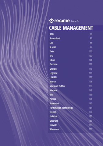 CABLE MANAGEMENTABB 80Armorduct 82CSS 88D-Line 95Deta 100EFS 102Elkay 104Flexicon 108Gripple 113Legrand 119LINIAN 123Marco 128Marshall Tufflex 133Metpro 143MK 153Pemsa 154Steelmart 165Termination Technology 167Trench 170Unistrut 180Unitrunk 185Univolt 195Walraven 200Issue 5
